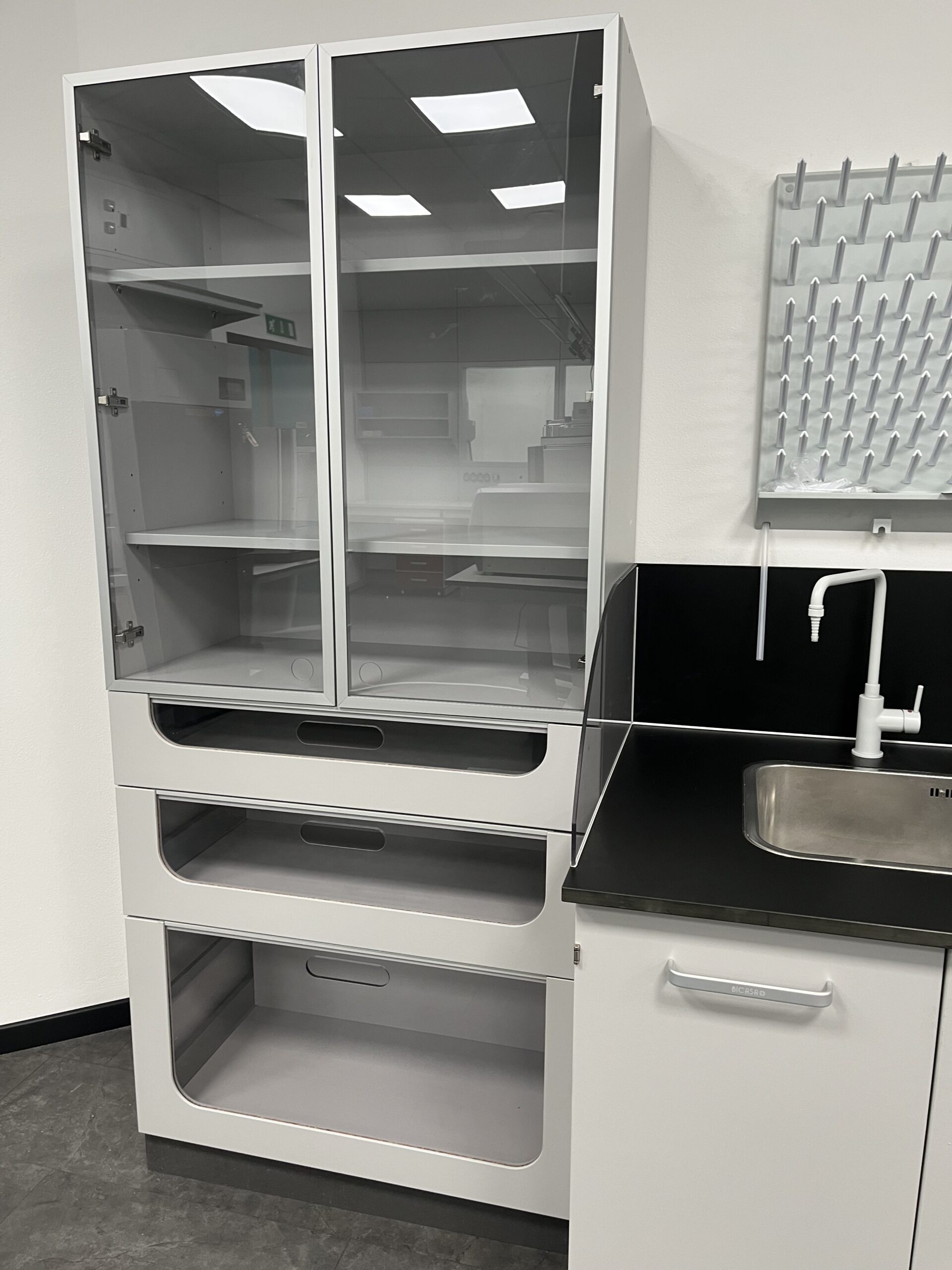 Laboratory furniture includes a wide range of specialized workstations and storage solutions, such as: · Benches & casework – Fixed or modular workstations for research. · Fume hoods – Ventilated enclosures for handling hazardous substances. · Cabinets & shelving – Storage solutions for chemicals and equipment. · Mobile workstations – Adjustable and movable lab tables/benches · VSM – Vertical Service Modules for greater adaptability in the lab space